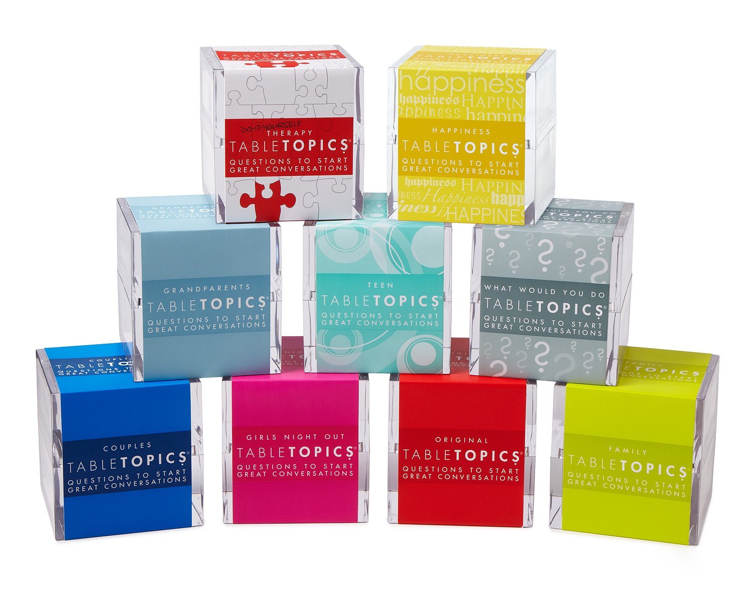 Table topics game questions. What gets you excited about life. A four inch clear acrylic cube holds 135 cards each with a provocative question that is sure to inspire lively and meaningful conversationthese little cards make a great game for the classroom or meeting room around the table or on the patio. Who do you sometimes compare yourself to.