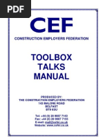 With the topics already created this saves you a lot of work. Toolbox talks are designed to assist supervisors and managers at all levels to distribute safety related information and guidance to work team members in an informal but practical forum. They are available in doc or pdf format.
